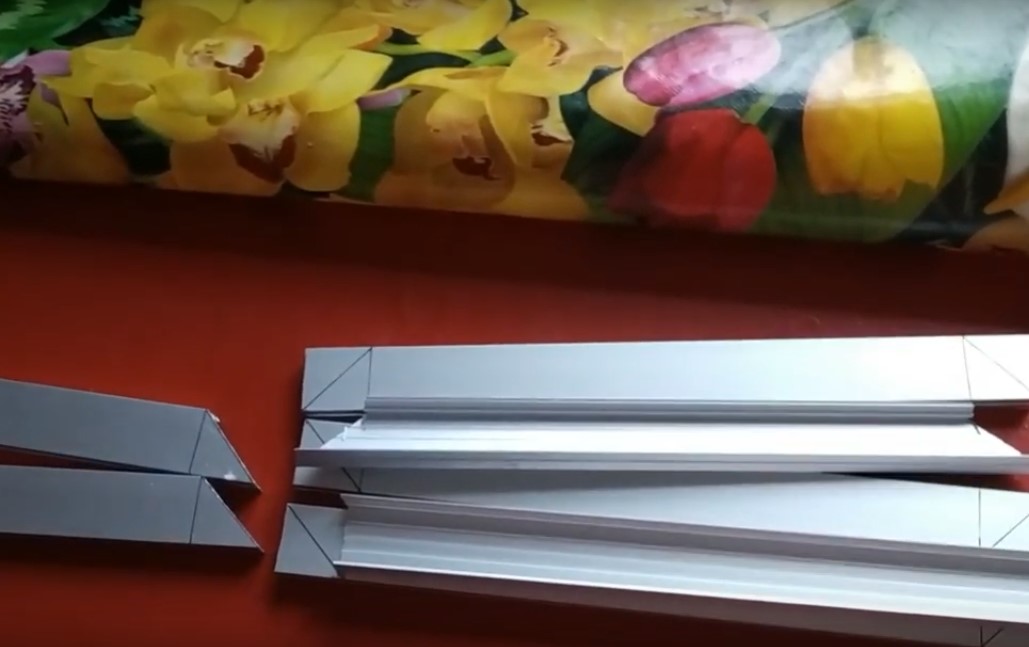 Сначала собирается каркас. Профиль разделяют по размеру стороны квадрата (понадобится 4 одинаковых части), запиливают концы под 45°. Вырезают текстолит буквой «Г». Толщина должна быть такой, чтобы кусочки входили в углы рамы. Собираются квадраты на винтах.