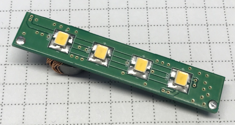 Светильник прилично работает в диапазоне от 1 до 1,5 вольт. Потребляет около 100мА. От напряжения 0,5 вольта светится тускло, но тоже работает. Думаю, можно напечатать на принтере белую крышку целиком на корпус с пазом для светодиодов, чтобы выглядело более эстетично в шкафу.