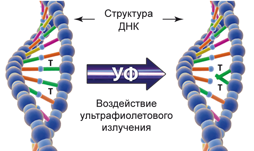 УФ свет разрушает ДНК структуру клеток