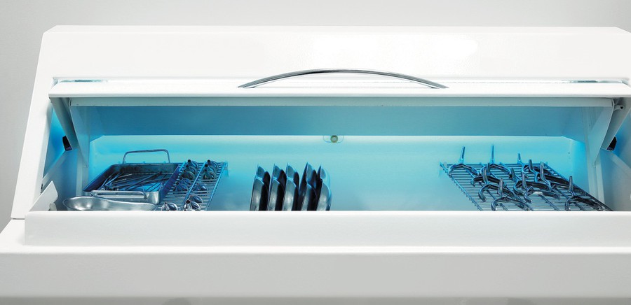 Обеззараживание медицинского инструмента с помощью светодиодной бактерицидной лампы.