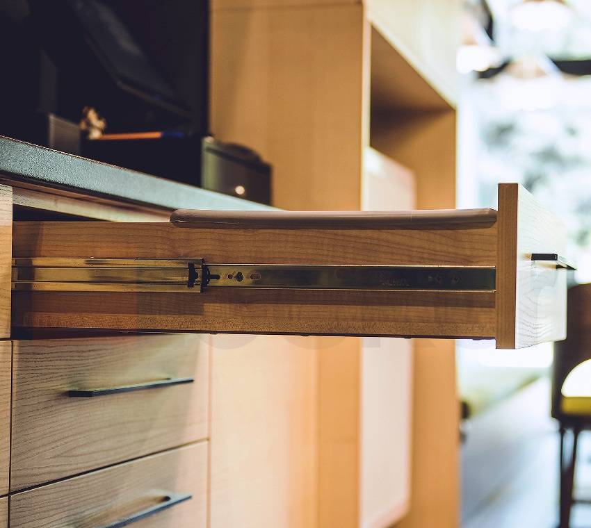 Чтобы выдвижные ящики хорошо функционировали, надо ответственно подойти к выбору направляющих
