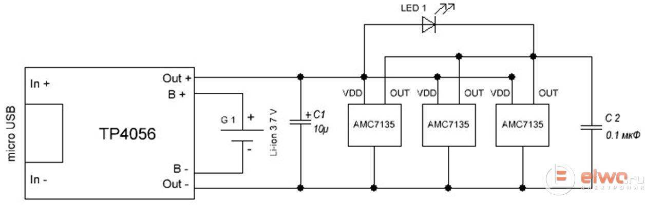 Еще одной важной и крайне полезной особенностью данной микросхемы является то, что их можно устанавливать параллельно для увеличения тока, протекающего через светодиод. В результате родилась такая схема: