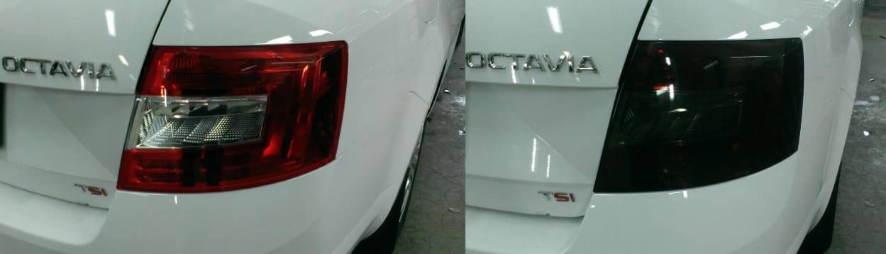 Красная тонировка запрещена к монтажу на переднюю оптику, однако широко применяется на задних фонарях. Тонировка задних фар ничем не отличается от передних и не требует дополнительных знаний.