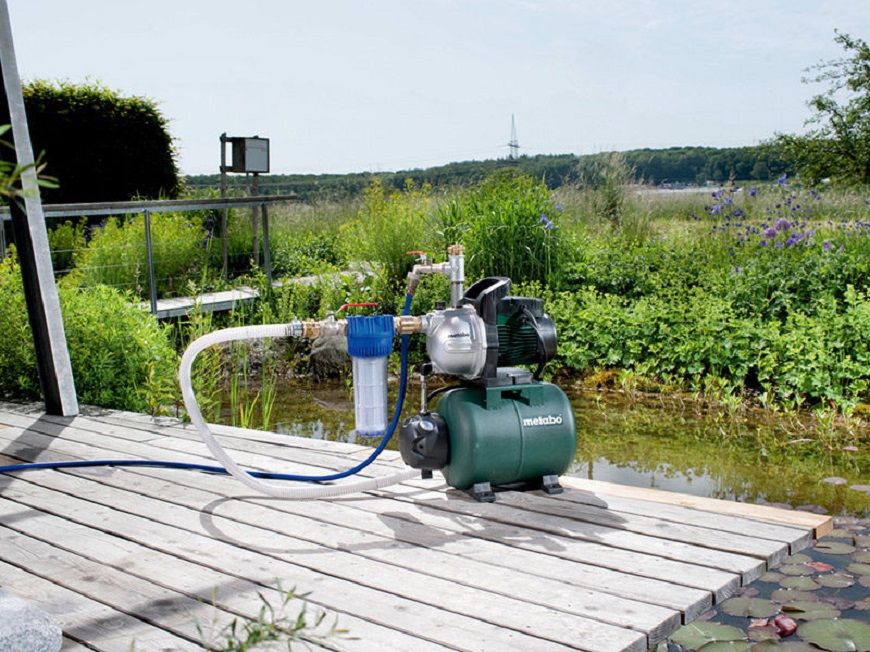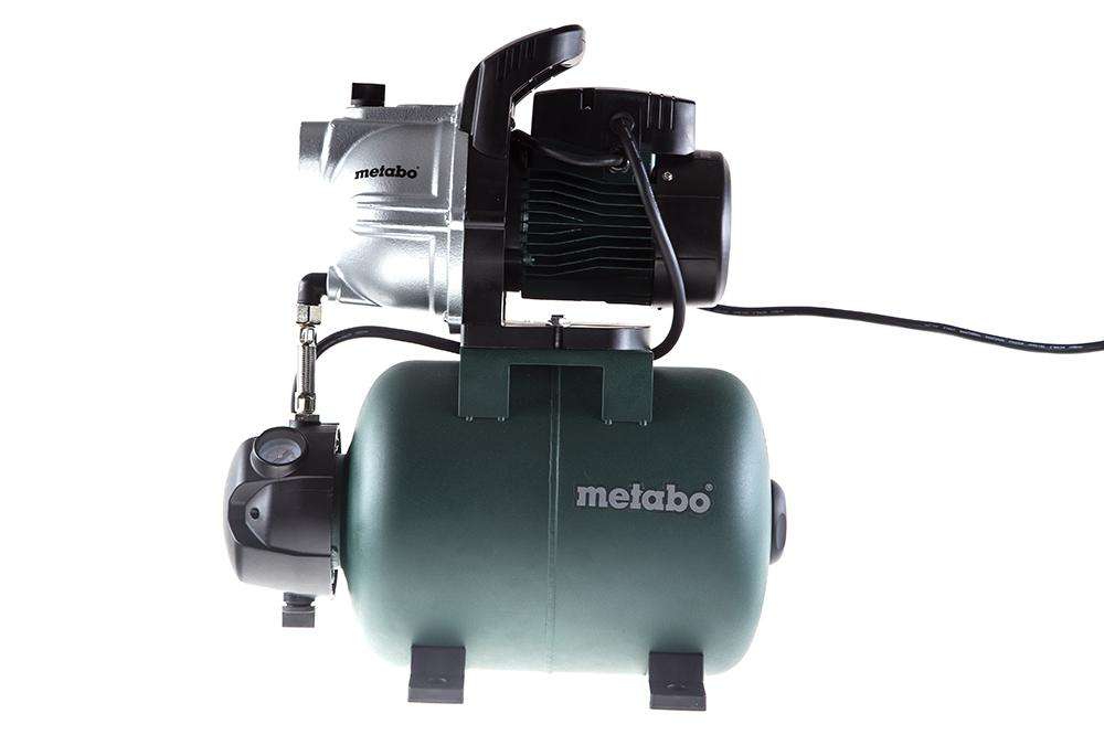 Следующей в наш обзор насосных станции с гидроаккумулятором мы вносим модель от компании Metabo. Очень хорошее устройство серии HWWI 4500/25 Inox предназначено для использования в частных домах и на дачах. Оно хорошо зарекомендовало себя в перекачивания чистой воды из разных систем водоснабжения. Благодаря высокой мощности электродвигателя (1300 Вт) поддерживается производительность в 4.5 куб. м/ч при напоре 48 м. Глубина всасывания здесь стандартная – до 8 м. Установленный обратный клапан и система с индикацией защищает насосную станцию с гидроаккумулятором от работы в сухую. Объем гидробака составляет 24 л.