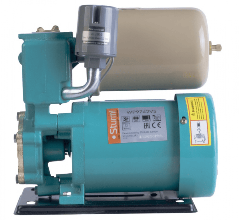 - Снабжена автоматикой, транспортирует жидкость с восьми метров. При этом производительность достигает 3,7 кубометров в течении часа. Оборудована блоком от перегрузов, контроллером давления воды. Дополнительное оборудование делает аппарат комфортным для долгосрочного использования. Неприхотлив в обслуживании, работает тихо. Гидробак компактного размера, но этого размера хватает для работы без поломок в гарантийный период и более.Плюсы: