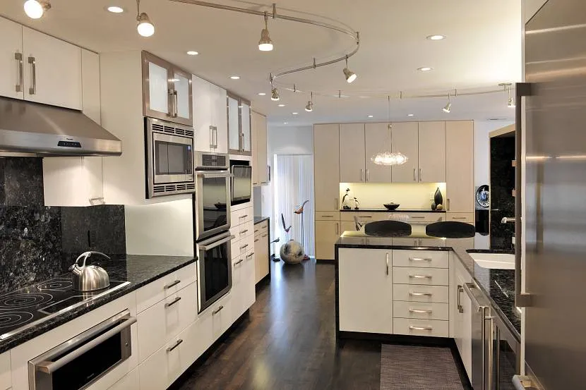 Кухня, рабочее место в мастерской, обеденная зона. Места, где направленное освещение просто необходимо. Многократные источники света минимизируют проблему тени, готовить, обедать и заниматься делами становится гораздо комфортнее.
