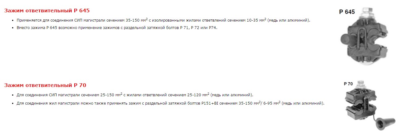 Еще один из вариантов – использование специальных дистанционных зажимов или бандажей. Вот их марки и характеристики с размерами под СИП: