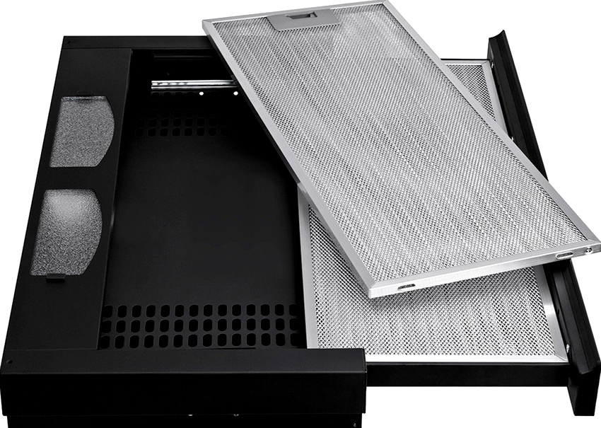 Чтобы вытяжка нормально функционировала, необходимо регулярно ухаживать за ее металлическими компонентами при загрязнении антизапахового фильтра.
