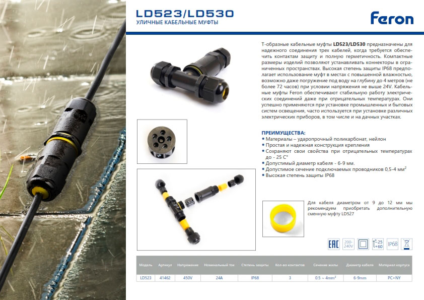 Соединение в земле допустимо только через кабельную муфту. Например, такую – Feron LD523/530.