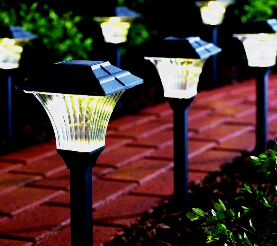 - Газонные светильники на штыре. Как правило, имеют небольшую мощность и работают от пальчиковых батареек. Служат подсветкой и выполняют декоративную функцию.