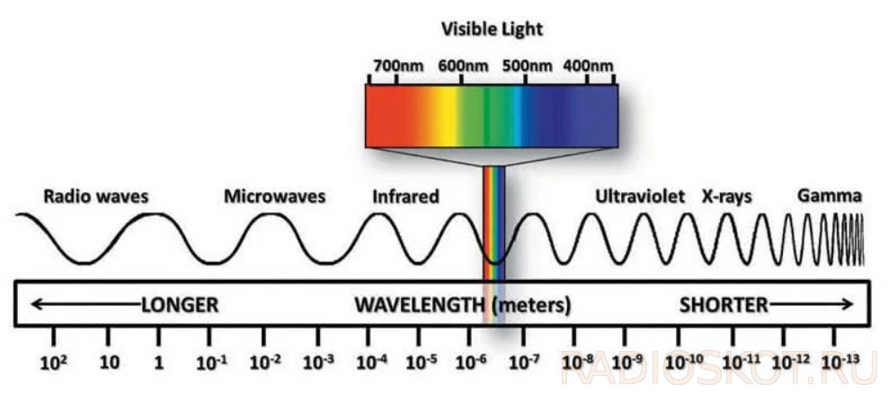 УФ-излучение находится между видимым светом и рентгеновским излучением и охватывает часть спектра с длиной волны от 400 до 100 нм. Чем короче длина волны, тем больше энергия и выше частота.