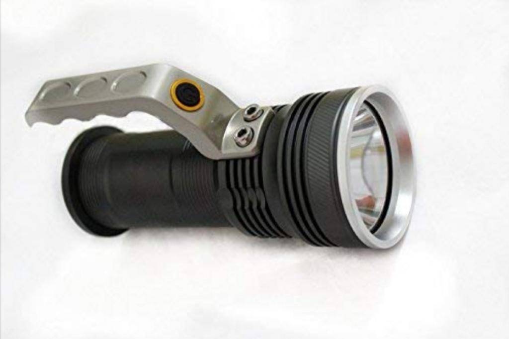 - Водонепроницаемый ультрафиолетовый фонарь для дайвинга, подводной охоты, рыбалки. Мощный инструмент для подводной подсветки. Дальность луча в зависимости от прозрачности воды до 100 м. Есть крепление для ношения на поясе. Размер устройства 20 см.