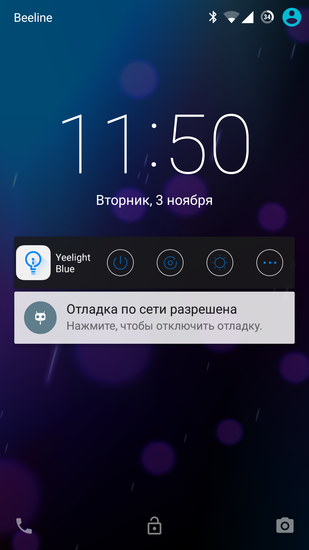 Уведомления в шторке позволяют управлять лампой прямо с экрана блокировки