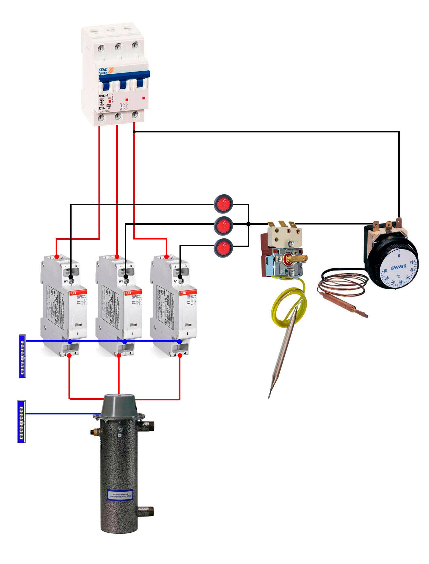Схема подключения электрокотла к электросети 380 В (трехфазного)