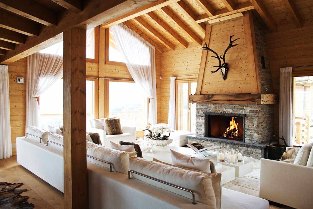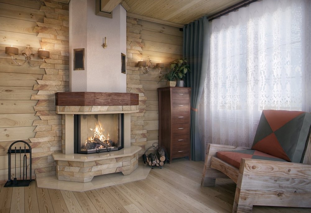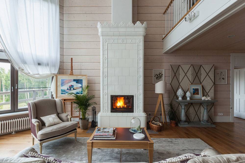 Камин, обустроенный в бревенчатом доме, делает атмосферу намного уютнее. Однако при строительстве необходимо строго соблюдать технологический процесс