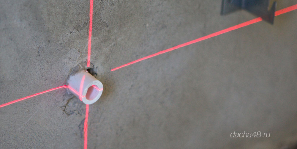 Отлично, отрезали, теперь хорошо бы установить все без отклонений по осям и углам. На авось пускать не хотелось поэтому поставил лазерный уровень. По нему четко можно установить кран.