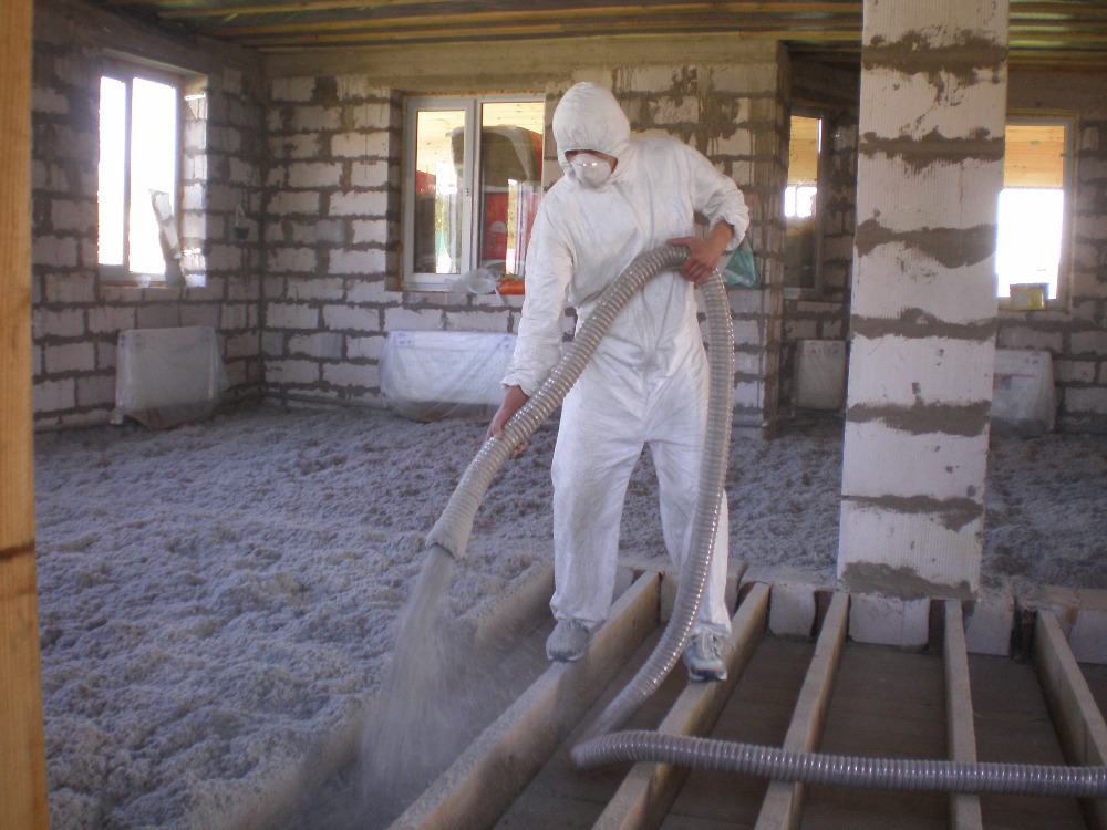 - Задувка материала спецоборудованием. Эковату подают под высоким давлением по шлангу. Материал может быть в сухом или влажном виде. Иногда используют лигнин для склеивания волокон.