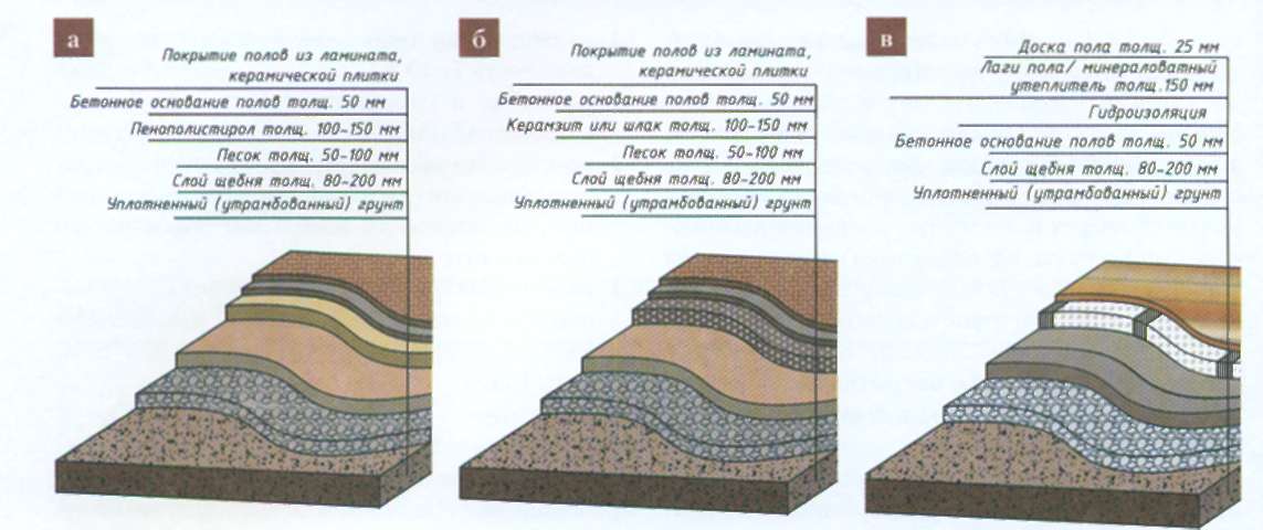Рассмотрим основные виды утеплителей для пола в зависимости от его конструкции:
