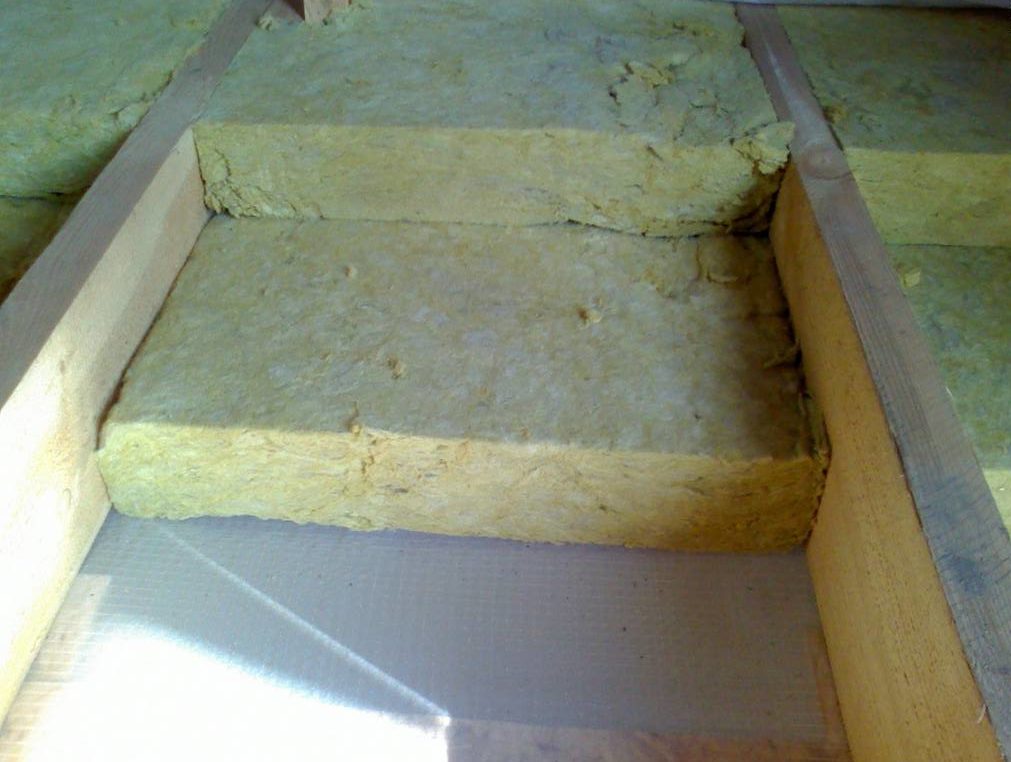 - между брусками укладывается утеплительный материал, причем делается это максимально плотно, без зазоров и щелей;