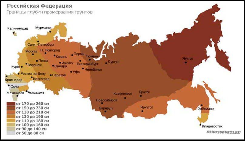 - прокладка коммуникации на глубине, превышающей величину промерзания земли;