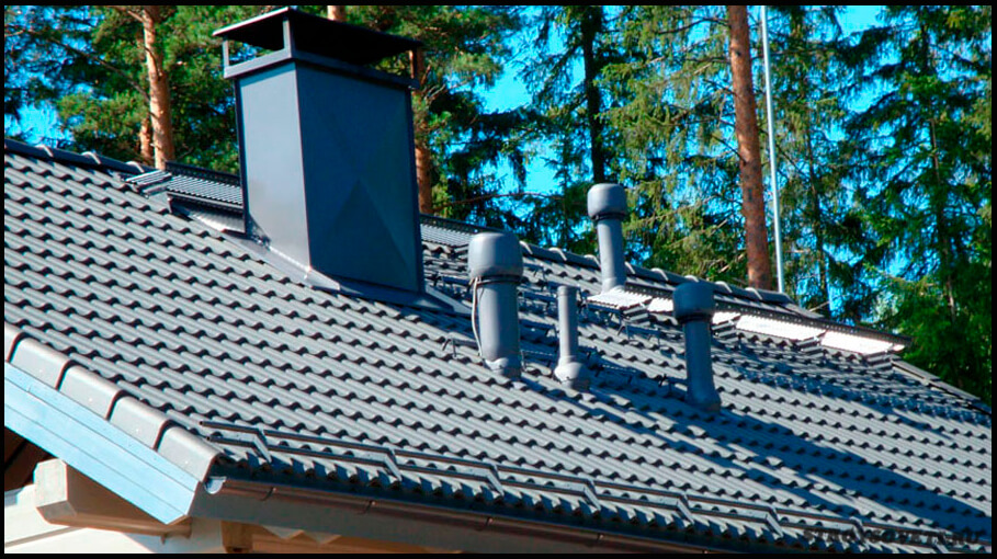 На дымоходы рекомендуют ставить специальные зонтики, для того чтобы исключить попадание в дымовую трубу дождевой воды и ветра. Узел прохода дымовой трубы не следует устанавливать в ендове, потому как это воспрепятствует герметизации стыков кровли и фартука трубы. Помимо этого, в этом месте стопроцентно образуется наледь и снежные карманы.