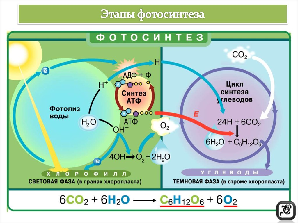 Процесс фотосинтеза можно разделить на две фазы: