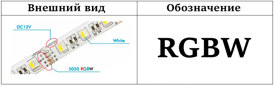 Маркировку наносят на упаковку или бобину изделия, придерживаясь международных стандартов. Расшифровка маркировки ленты на примере LED 12V RGBW SMD 5050 120 IP65 представлена в таблице ниже.