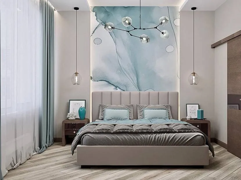 Благодаря источникам света, в спальне дополнительно можно выделить зону с кроватью, туалетным столиком или гардеробом.