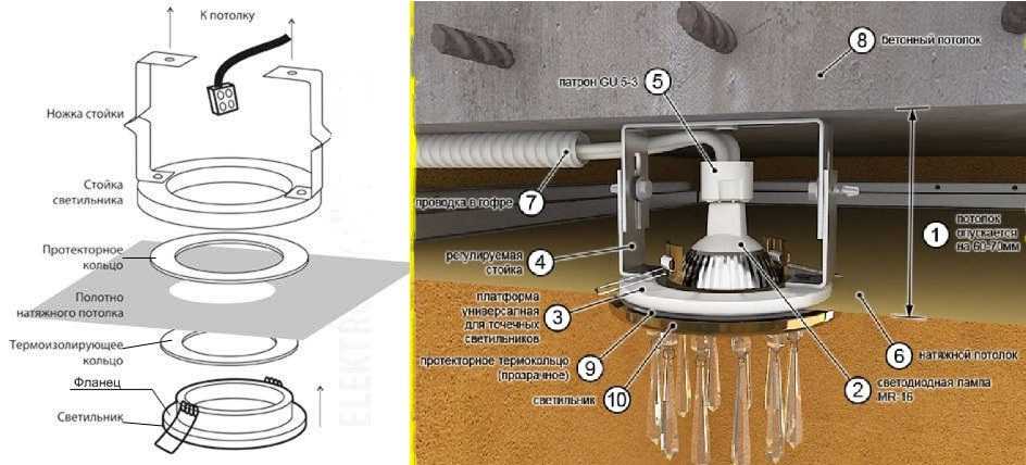 Монтаж точечного светильника