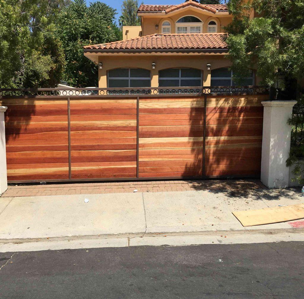 Такие ворота редко встречаются, хотя они идеально дополняют деревянные дома. Чтобы конструкция была прочнее, сварные каркасы створок делают из металла. Ворота могут быть распашными, раздвижными, иметь калитку. Древесина обладает многими достоинствами: