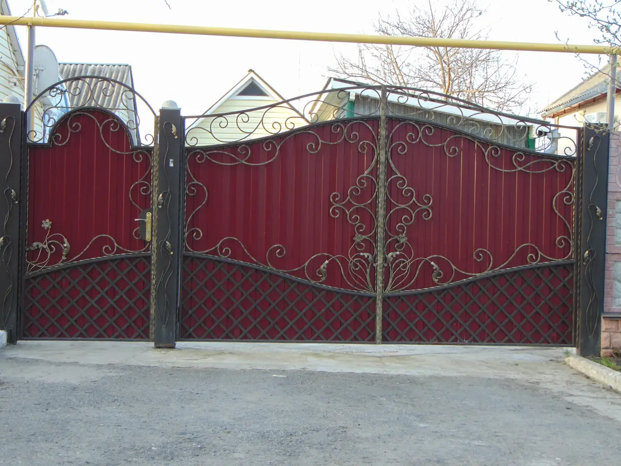 При желании ворота можно украсить коваными изделиями, которые придадут дополнительную привлекательность и эстетику.