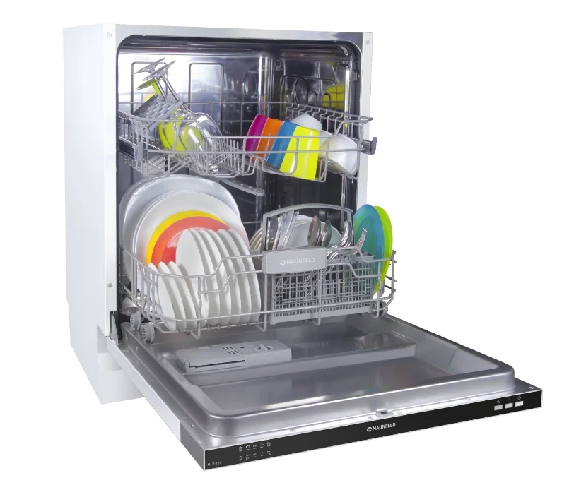 Техника марки MAUNFELD грамотно сочетает в себе английскую классику с итальянским модерном. Особенно хорошо это прослеживается в одной из лучших по соотношению цена – качество посудомоек на отечественном рынке – MLP-12i. Данный агрегат рассчитан на 12 комплектов посуды, расходует 11 литров воды при стандартных настройках, а также меньше 1 кВтч электроэнергии за цикл. Максимальное же энергопотребление в устройстве равно умеренным 2100 Вт, а уровень шума находится на уровне 49 дБ, поэтому почти не слышим.