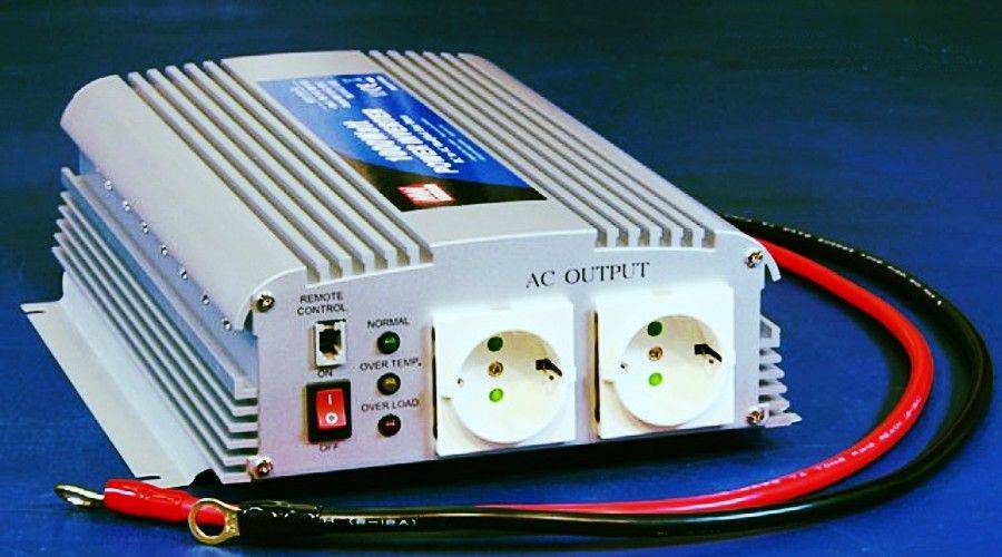 Мощность 900 ватт, входное напряжение 10-15 вольт. Выходное напряжение со минимальным количеством гармоник и частотой 50 герц. При нагрузке свыше 1,3 киловатт автоматически отключается. Если нагрузка соответствует норме, то напряжение стабильно. Может использоваться как мощное пускозарядное устройство (обратное преобразование из 220 в 12 вольт). Внешний вид – большая и тяжелая коробка с цифровым индикатором и переключателями. Стоимость 35 тысяч рублей.
