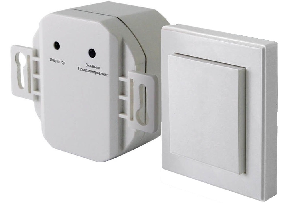Как и в случае с инфракрасными системами, радиопередатчик, как правило, размещается в дистанционном пульте, а приёмник – на месте клавишного выключателя.