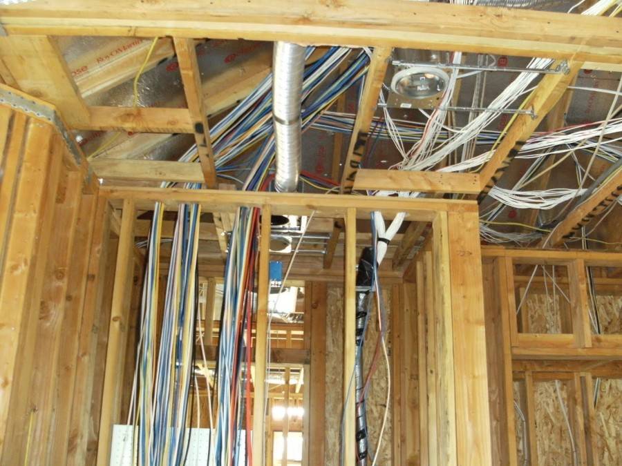После закупки всех необходимых устройств, проводят монтаж электропроводки. Проводка в деревянном доме, как уже говорилось выше, может быть двух типов: открытая и закрытая. В первом случае провода размещают в кабель каналах.