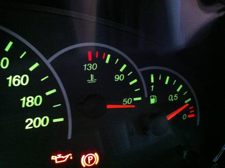 - температура охлаждающей жидкости – нормальное положение стрелки 80-90 ℃, свыше 100 ℃ происходит перегрев системы охлаждения, эксплуатация двигателя запрещена;