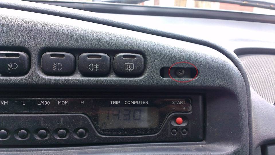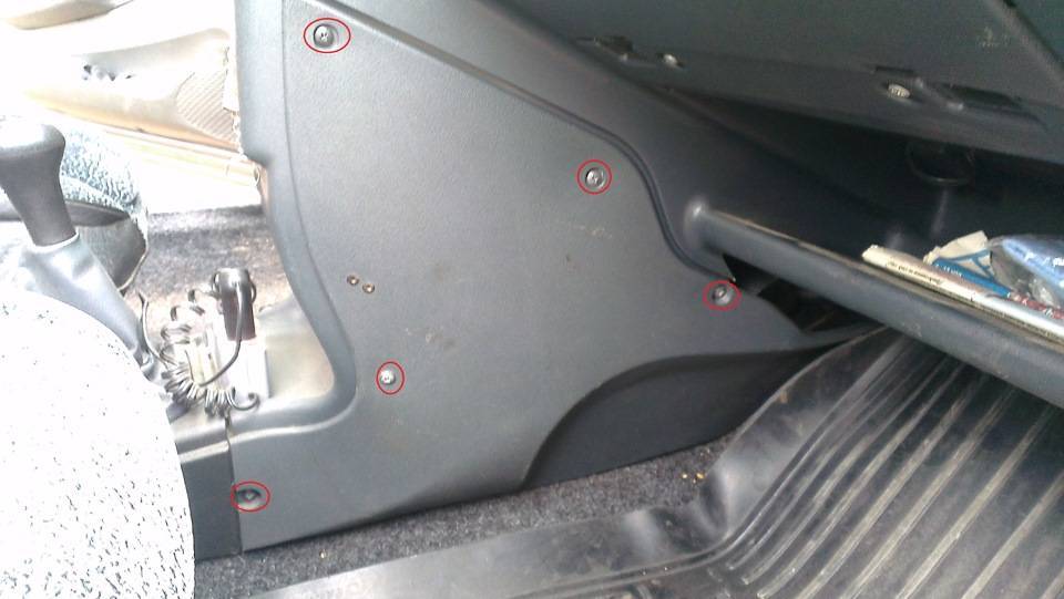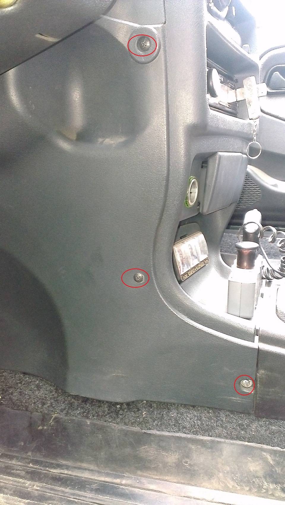 Снимаем самарезы снизу панели приборов. У меня они отсутствовали так как там уже кто то лазил. Поэтому я снял пустые отверстия: