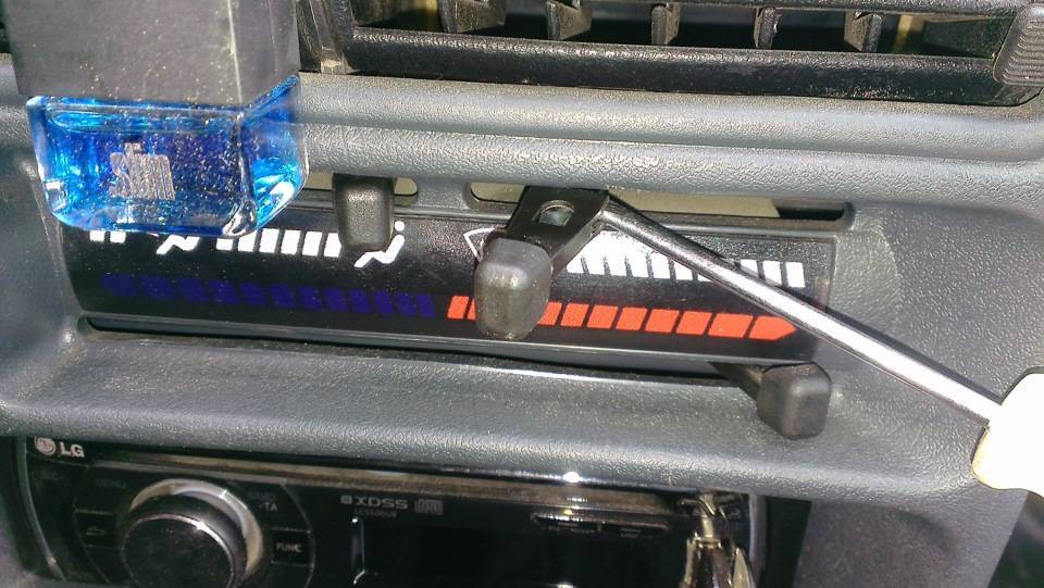Затем снимаем рукоятки рычагов управления отопителя. поддев отверткой верхние рычаги сверху