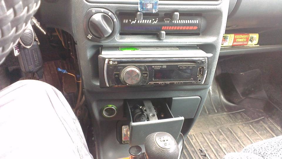 Затем вытаскиваем пепельницу, чтобы не гремела и высовываем магнитолу, у меня провода оказались длинными, ничего кроме антенны отсоединять не пришлось.