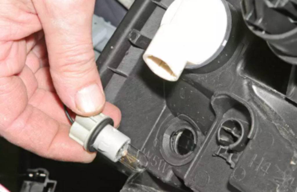 Сгоревшая бесцокольная лампочка, установленная в указателе габаритов, меняется следующим образом: