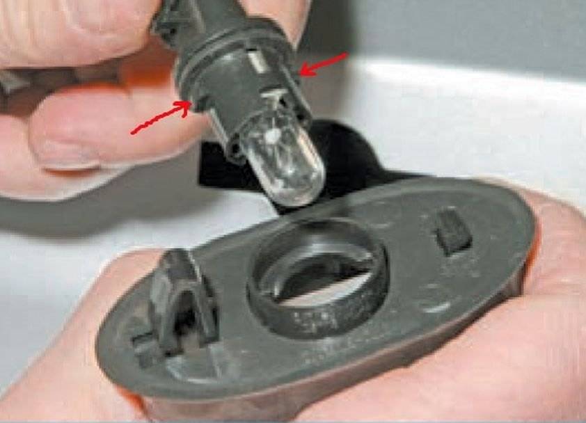 - Извлекаем на себя перегоревшую лампу и устанавливаем новую. Никаких хитростей нет, вынул и вставил новую.