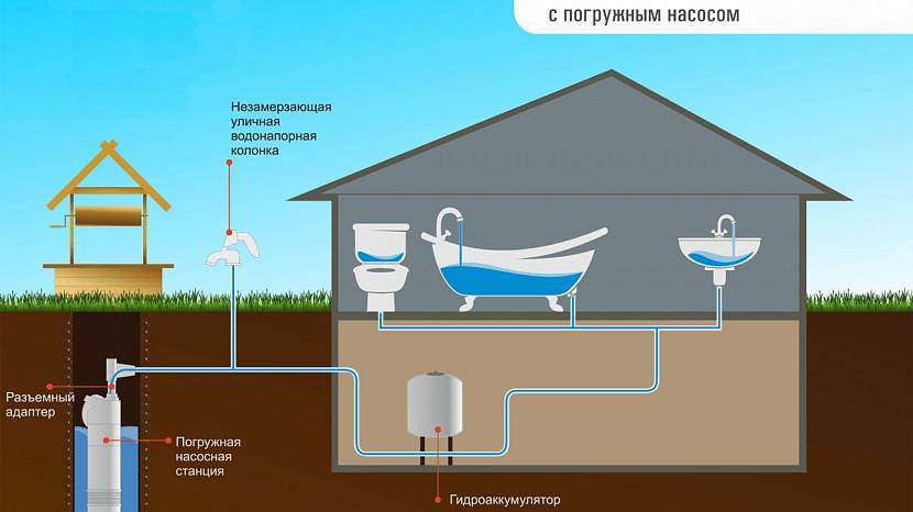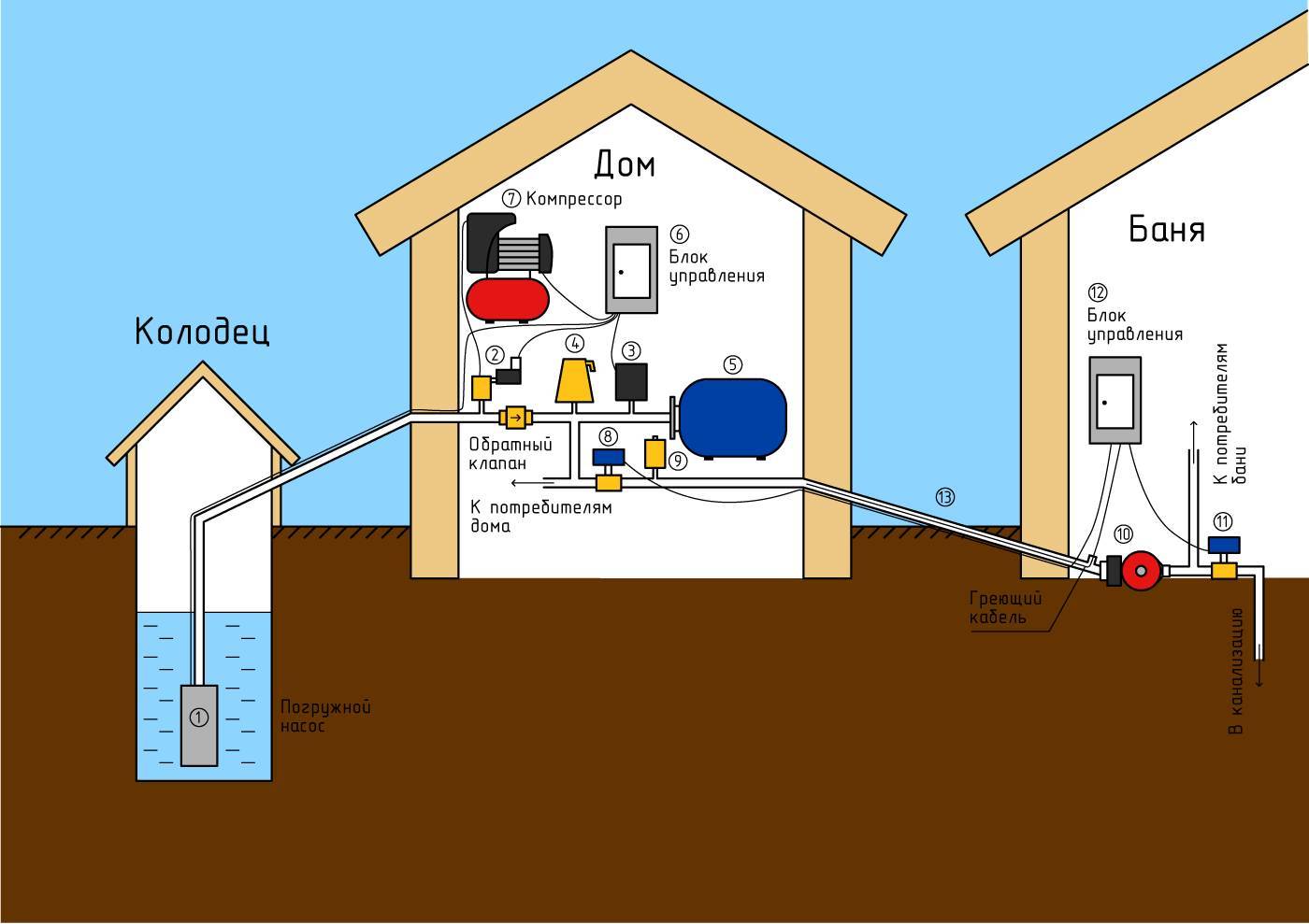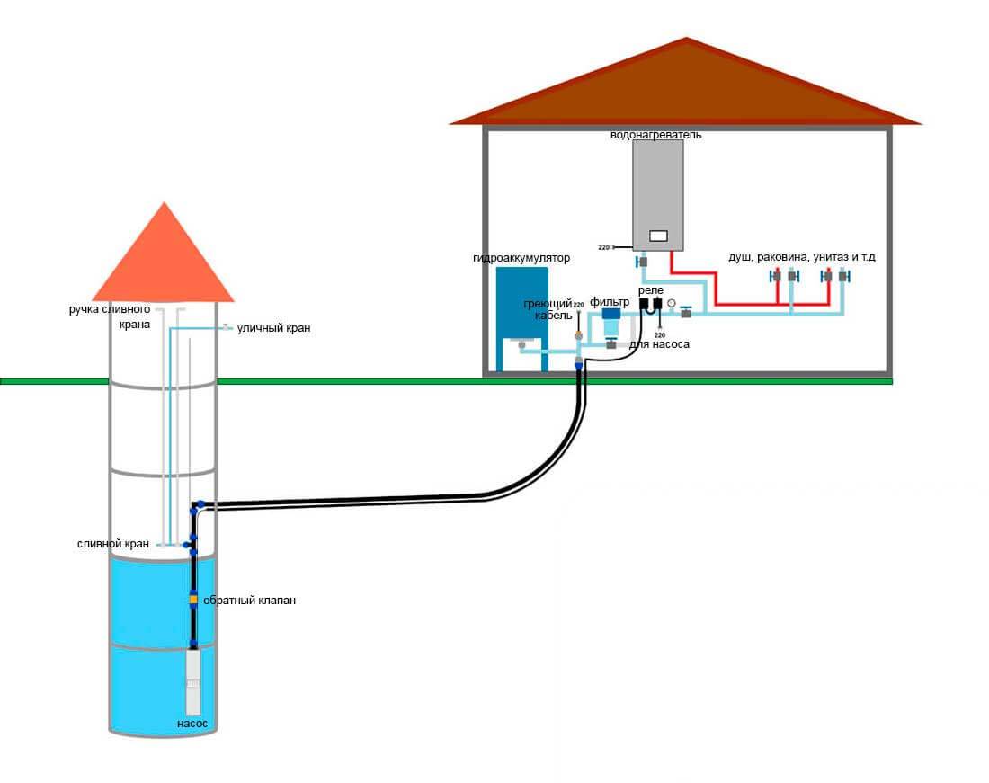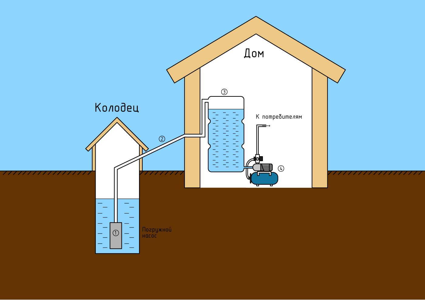 Схема водоснабжение дачи из колодца на базе погружного насоса