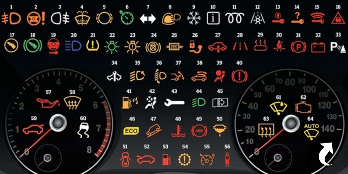 Продолжаем изучать, что означают лампочки на панели приборов автомобиля, далее переходим к предупреждающим знакам.